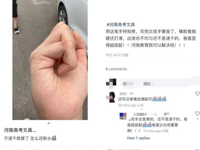 截圖來(lái)自網(wǎng)友發(fā)布的河南高考文具使用體驗(yàn)