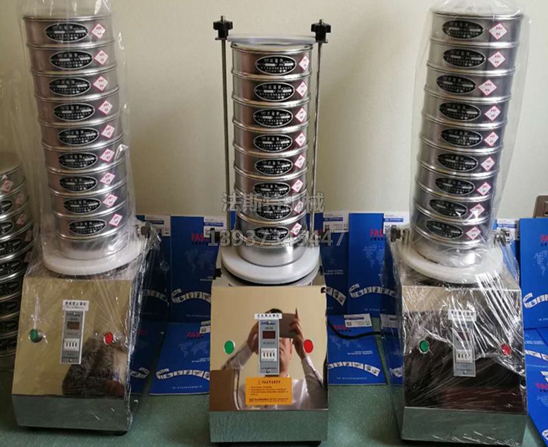 試驗振動篩通過振動電機帶動上部振動盤振動,再通過振動盤傳導至按放在振動盤上部的國標試驗篩框,然后,把小于篩框孔徑的物料篩分至下層篩框,如此層層篩選,使每層試驗篩內(nèi)留下相同粒度的物料,達到不同粒度的分離分選,并確定此物料的粒度組成。