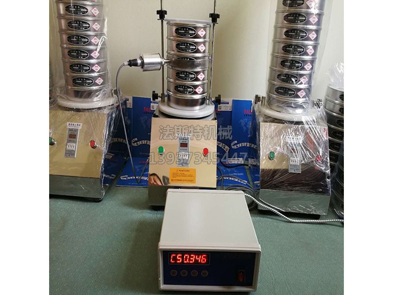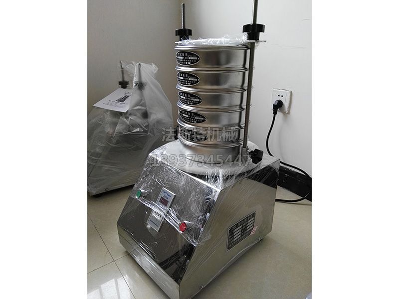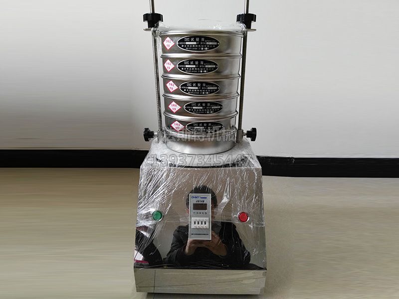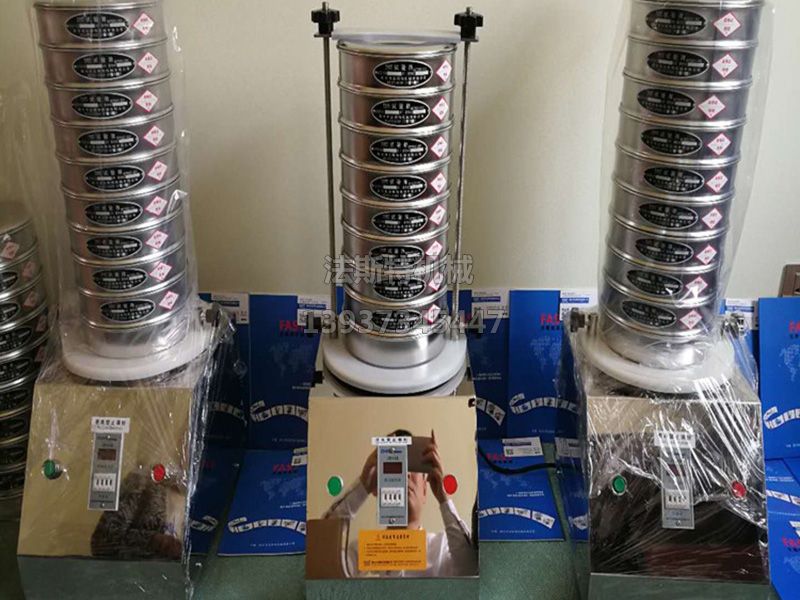 試驗(yàn)振動(dòng)篩通過(guò)振動(dòng)電機(jī)帶動(dòng)上部振動(dòng)盤振動(dòng),再通過(guò)振動(dòng)盤傳導(dǎo)至按放在振動(dòng)盤上部的國(guó)標(biāo)試驗(yàn)篩框,然后,把小于篩框孔徑的物料篩分至下層篩框,如此層層篩選,使每層試驗(yàn)篩內(nèi)留下相同粒度的物料,達(dá)到不同粒度的分離分選,并確定此物料的粒度組成。