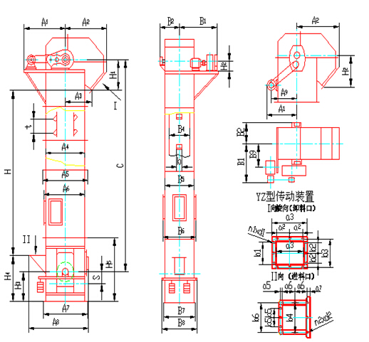 TH型斗式提升機結構型式圖如下
