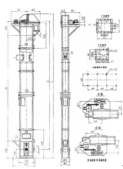 TD型皮帶式斗式提升機外形圖: