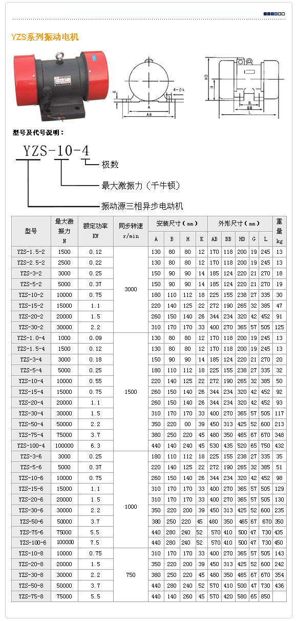 臥式振動電機/震動電機可分為2、4、6、8級振動電機。