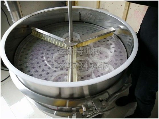 例如在面粉篩分中,有些細(xì)渣子卡在網(wǎng)孔中,在刮板旋轉(zhuǎn)推動的作用下,可以將雜質(zhì)推向出料口,自動排出,減少了堵網(wǎng)的發(fā)生;在固液分離作業(yè)中,能把各類漿液中的非溶性物質(zhì)迅速地清除從出料口排出,防止堵網(wǎng),提高篩分效率。
